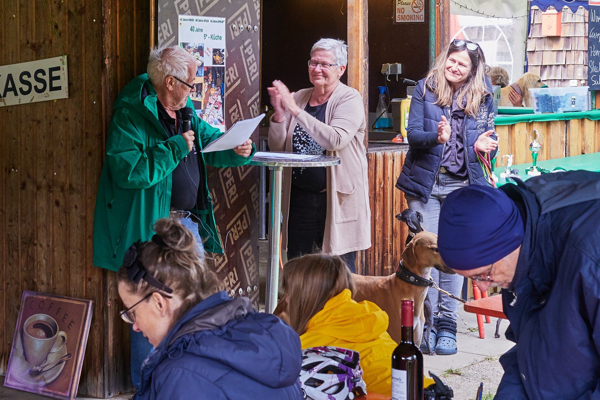 In fast 100 gezogenen Läufen (einschließlich der technischen und Schauläufe) konnten die Hunde ihre läuferischen Fähigkeiten unter Beweis stellen. Das für die Mittagsstunden angesagte Unwetter entschloss sich Gott sei Dank, einen anderen Weg zu nehmen und einen Bogen um die Rennbahn des WRCB zu machen, so dass wir die Rennen – unwetterfrei – zu Ende ziehen konnten und nun am Nachmittag die Siegerehrung unter unserem Vorbau stattfinden konnte.